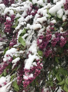 through the plum and mountain ash, the lilac and aspen, relieving them of whatever burden he could. For some branches, it was too late. Full of yesterday’s blossoms, they littered the yard.